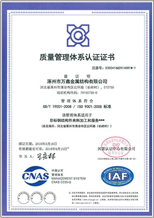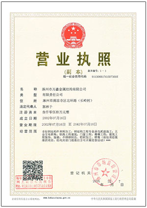 涿州市萬鑫金屬結構有限公司,自2002年成立以來,一直秉承“實現企業(yè)最大價值的同時實現員工和客戶的最大價值 ”的經營理念,堅持“一切按制度管理、一切按程序操作、一切用數據說話、一次把任務完成好”的企業(yè)作風,堅持以“安全第一、質量第一、服務第一”的企業(yè)宗旨,為客戶提供設計、制造、安裝一條龍的工程服務。